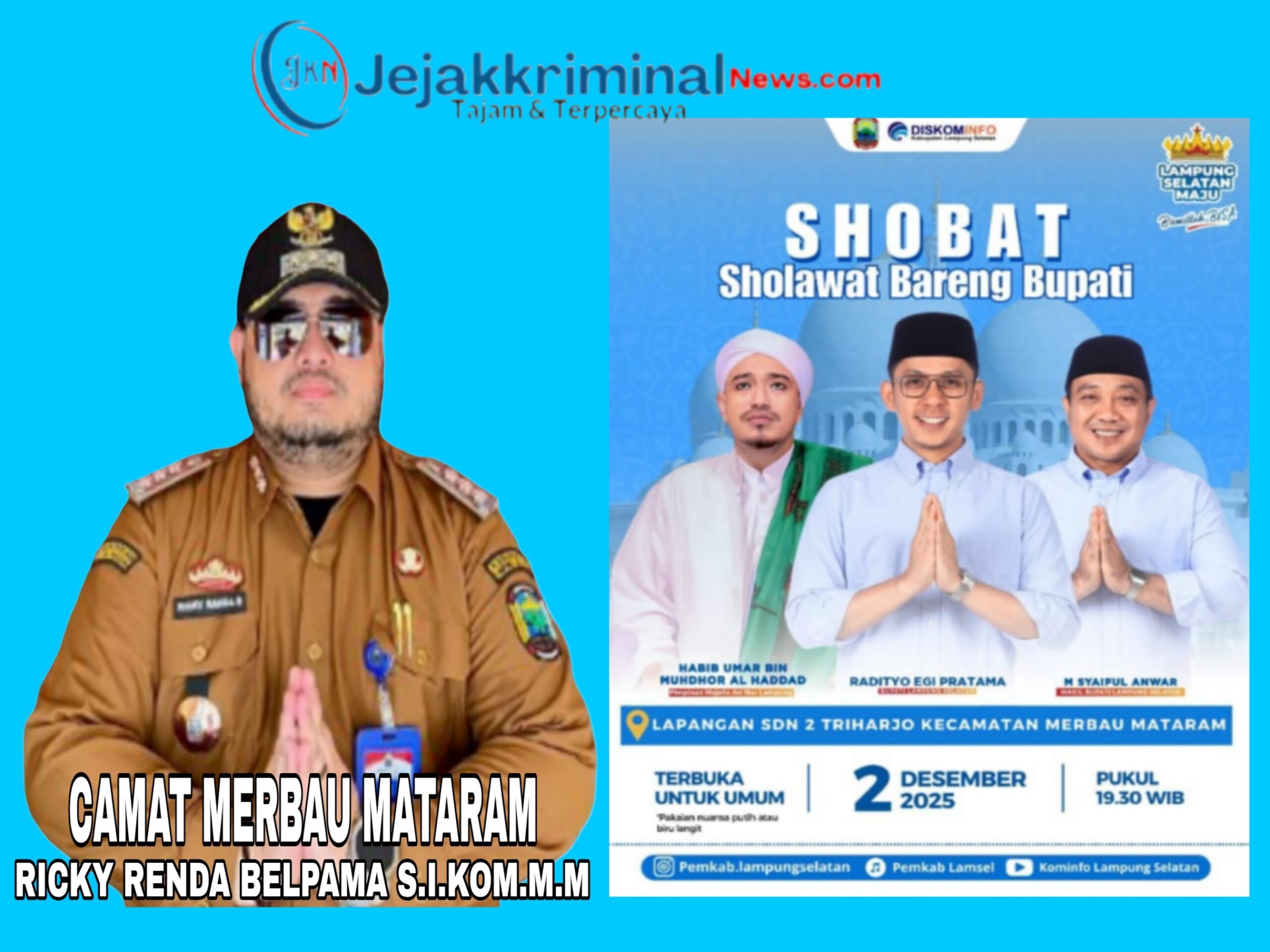Lampung Selatan, – Ribuan warga Merbau mataram diundang untuk menghadiri acara keagamaan akbar, yang akan diselenggarakan pada hari Selasa, 2 Desember 2025. Acara: SHOBAT (Sholawat Bareng Bupati)