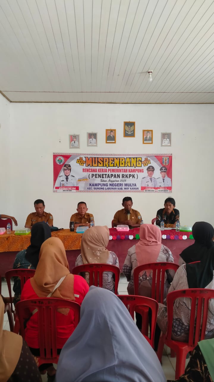 Way Kanan JejakKrimnalNews 03/11/2025– Dalam upaya menyusun rencana pembangunan yang partisipatif dan berkeadilan, Pemerintah Kampung Negeri Mulyo, Kecamatan Gunung Labuhan, menggelar Musyawarah Rencana Pembangunan Kampung (Musrenbangkam) tahun 2025 di balai kampung setempat guna Persiapan penyusunan RKP Kampung Negeri Mulyo Tahun 2026.