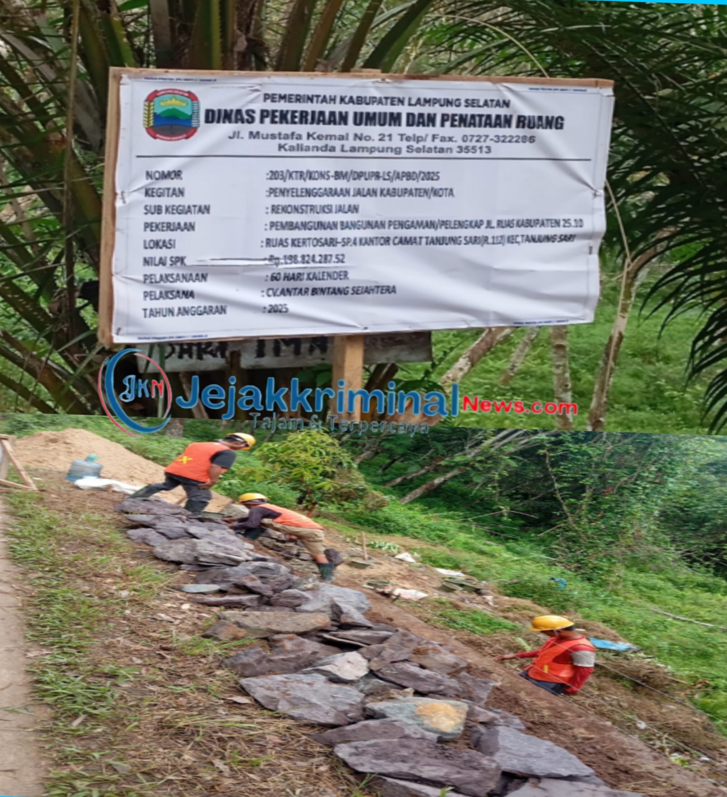 Jejakkriminalnews.com, Lampung Selatan, Proyek peningkatan pengaman jalan pada ruas Kabupaten dari Kertosari hingga Kantor Kecamatan Tanjung Sari kini memicu kemarahan warga. Proyek yang diduga kuat bersumber dari APBD Lampung Selatan,itu dinilai jauh dari standar pekerjaan infrastruktur.